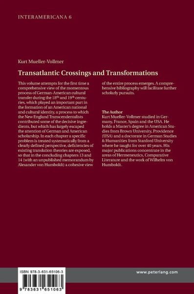 This volume attempts for the first time a comprehensive view of the momentous process of German-American cultural transfer during the 18th and 19th centuries, which played an important part in the formation of an American national and cultural identity, a process to which the New England Transcendentalists contributed some of the decisive ingredients, but which has largely escaped the attention of German and American scholarship. In each chapter a specific problem is treated systematically from a clearly defined perspective, deficiencies of existing translation theories are exposed, so that in the concluding chapters 13 and 14 (with an unpublished memorandum by Alexander von Humboldt) a cohesive view of the entire process emerges. A comprehensive bibliography will facilitate further scholarly pursuits.