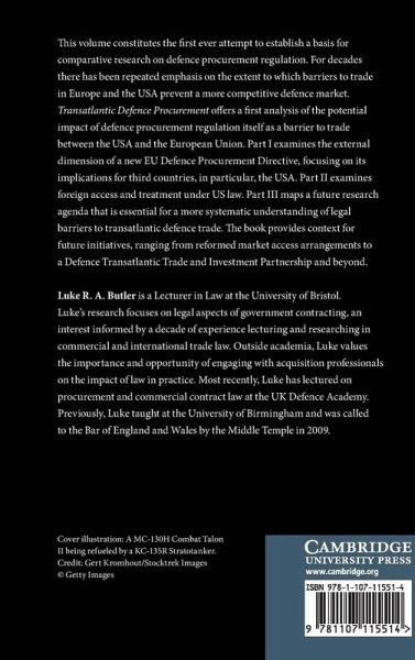 This volume constitutes the first ever attempt to establish a basis for comparative research on defence procurement regulation. For decades there has been repeated emphasis on the extent to which barriers to trade in Europe and the US prevent a more competitive defence market. Transatlantic Defence Procurement offers the first analysis of the potential impact of defence procurement regulation itself as a barrier to trade between the US and the EU. Part I examines the external dimension of a new EU Defence Procurement Directive, focusing on its implications for third countries, in particular the US. Part II examines foreign access and treatment under US law. Part III maps a future research agenda that is essential for a more systematic understanding of legal barriers to transatlantic defence trade. The book provides context for future initiatives, ranging from reformed market access arrangements to a Defence Transatlantic Trade and Investment Partnership and beyond.