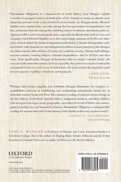 The sixteenth-century changes wrought by expansion of Spanish empire into Peru shaped the ways of being a family in colonial Peru. Even as migration, race mixture, and transculturation took place, family members fulfilled obligations to one another by adapting custom to a changing world. Family began to shift when, from the moment of their arrival in 1532, Spaniards were joined with elite indigenous women in political marriage-like alliances. Almost immediately, a generation of mestizos was born that challenged the hierarchies of colonial society. In response, the Spanish Crown began to promote the marriage of these men and the travel of Spanish women to Peru to promote good customs and even serve as surrogate parents. Other reactions came from wives in Spain who, abandoned by husbands, sought assistance to fulfill family duties. For indigenous families, the pressures of colonialism prompted migration to cities. By mid-century, the increase of Spanish migration to Peru changed the social landscape, but did not halt mixed-race marriages. The book posits that late sixteenth-century cities, specifically Lima and Arequipa, were host to indigenous and Spanish families but also to numerous 'blended' families borne of a process of mestizaje. In its final chapter, the legacies for the next generation reveal how Spanish fathers sometimes challenged law with custom and sentiment to establish inheritance plans for their children. By tracing family obligations connecting Peru and Spain through dowries, bequests, legal powers, and letters, Transatlantic Obligations presents a powerful call to rethink sixteenth-century definitions of family.