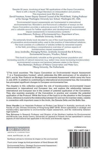 This book examines 'The Espoo Convention on Environmental Impact Assessment in a Transboundary Context', which celebrates the twentieth anniversary of its adoption in 2011, and its 'Kiev Protocol on Strategic Environmental Assessment' which came into force in July 2010.
