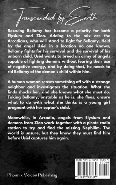 Rescuing Bellamy has become a priority for both Elysium and Zion. Adding to the mix are the Arcadians, who will stand to fight for Bellamy. Held by the angel Usiel in a location no one knows, Bellamy fights for his survival and the survival of his unborn child. Usiel wants to breed an army of angels capable of fighting demons without fearing their use of negative energy, and by doing that, he needs to rid Bellamy of the demon's child within him. A human woman senses something off with a strange neighbor and investigates the situation. What she finds shocks her, and she knows what she must do. Taking Bellamy, unstable as he is, she flees, unsure what to do with what she thinks is a young girl pregnant with a child her captor wishes to kill. Meanwhile, in Arcadia, angels from Elysium and demons from Zion work together with a pirate radio station to try and find the missing Nephilim. The world is unsure, but they know they must find him before Usiel captures him again.