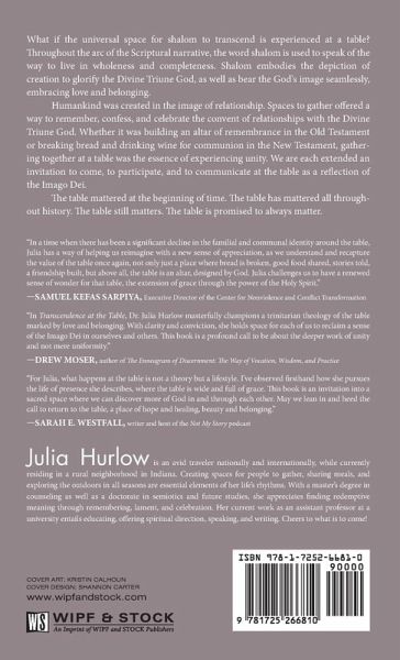 When is the last time you sat down for a meal, to break bread with other people, and experienced peace? Throughout the arc of the scriptural narrative the word ""shalom"" is used as a way to speak of the way of peace. This word shalom embodies the depiction of creation where all things would glorify to the Triune God as well as bear the image of the Triune God who seamlessly embraces love and belonging. What if the universal space at a table is where shalom is experienced relationally? What if the longing people have for love and belonging can be extended through hospitality at a table? Unification can happen when invitations are extended to come, participate, and communicate at the table as a reflection of the Imago Dei.