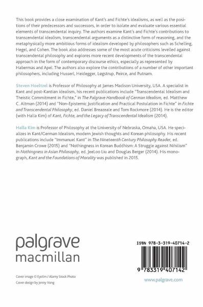 This book provides a close examination of Kant's and Fichte's idealisms, as well as the positions of their predecessors and successors, in order to isolate and evaluate various essential elements of transcendental inquiry. The authors examine Kant's and Fichte's contributions to transcendental idealism, transcendental arguments as a distinctive form of reasoning, and the metaphysically more ambitious forms of idealism developed by philosophers such as Schelling, Hegel, and Cohen. The book also addresses some of the most acute criticisms levelled against transcendental philosophy and explores more recent developments of the transcendental approach in the form of contemporary discourse ethics, especially as represented by Habermas and Apel. The authors also explore the contributions of a number of other important philosophers, including Husserl, Heidegger, Løgstrup, Peirce, and Putnam.