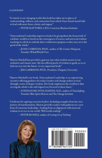From interviews with notable leaders, Shawne Mitchell identified the top traits of transcendent leaders and the powerful practices, such as meditation, yoga, and nature, which these remarkable individuals use to access expansive awareness and universal wisdom. Her new book, Transcendental Leadership, is a unique treatise on leadership, one focused on how leaders can access states of transcendence that inherently cultivate their being, allowing it to inform their internal disposition and worldview. By aligning who they already are and what they do now with the Source of universal wisdom and present awareness, they are serving the whole. Many people have come to the realization that whatever humankind is doing to secure our future isn't working. Most of us feel disillusioned with our leaders, mistrustful of our governments and institutions, and increasingly despondent about this state of affairs. Our collective behavior and our cultural and economic structures do not satisfy our basic inner needs for meaning, happiness, contribution, and peaceful wellbeing. For this, we must explore transcendence. There is no avoiding the interconnectivity of global economics, business, and politics on our people's wellbeing and the environment anymore or denying the enduring effect of the human presence everywhere we live. Transcendence is an element of the human experience that diminishes our sense of separateness from other people and the rest of nature. Leadership that comes from a place of transcendence and authenticity-from being deeply genuine and transparent-is critically important because, not only does the future of our planet depend on increasing the level of authentic communication among people, but humanity's wellbeing depends on our coming to the mutual realization of our interrelatedness with all other species on Earth.