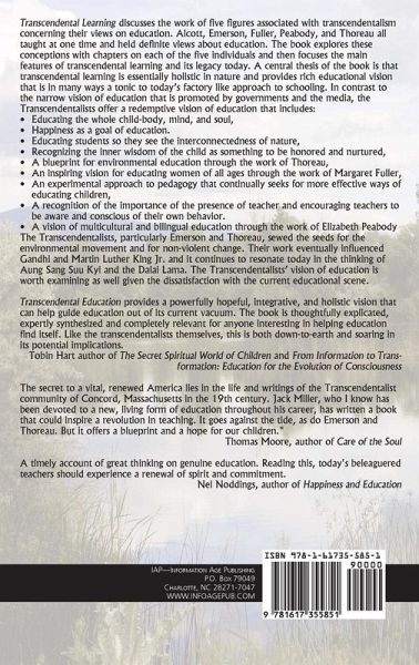 Transcendental Learning discusses the work of five figures associated with transcendentalism concerning their views on education. Alcott, Emerson, Fuller, Peabody and Thoreau all taught at one time and held definite views about education. The book explores these conceptions with chapters on each of the five individuals and then focuses the main features of transcendental learning and its legacy today. A central thesis of the book is that transcendental learning is essentially holistic in nature and provides rich educational vision that is in many ways a tonic to today's factory like approach to schooling. In contrast to the narrow vision of education that is promoted by governments and the media, the Transcendentalists offer a redemptive vision of education that includes: -educating the whole child-body, mind, and soul, -happiness as a goal of education. -educating students so they see the interconnectedness of nature, -recognizing the inner wisdom of the child as something to be honored and nurtured, - a blueprint for environmental education through the work of Thoreau, - an inspiring vision for educating women of all ages through the work of Margaret Fuller, - an experimental approach to pedagogy that continually seeks for more effective ways of educating children, - a recognition of the importance of the presence of teacher and encouraging teachers to be aware and conscious of their own behavior. -a vision of multicultural and bilingual education through the work of Elizabeth Peabody The Transcendentalists, particularly Emerson and Thoreau, sewed the seeds for the environmental movement and for non-violent change. Their work eventually influenced Gandhi and Martin Luther King Jr. and it continues to resonate today in the thinking of Aung Sang Suu Kyi and the Dalai Lama. The Transcendentalists' vision of education is worth examining as well given the dissatisfaction with the current educational scene.