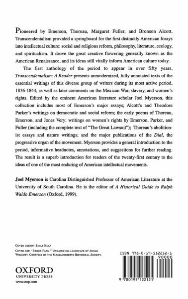 The transcendentalist movement is generally recognized to be the first major watershed in American literary and intellectual history. Pioneered by Emerson, Thoreau, Orestes Brownson, Margaret Fuller, and Bronson Alcott (among others), Transcendentalism provided a springboard for the first distinctly American forays into intellectual culture: religion and religious reform, philosophy, literature, ecology, and spiritualism. This new collection, edited by eminent American literature scholar Joel Myerson, is the first anthology of the period to appear in over fifty years. Transcendentalism: A Reader draws together in their entirety the essential writings of the Transcendentalist group during its most active period, 1836-1844. It includes the major publications of the Dial, the writings on democratic and social reform, the early poetry, nature writings, and all of Emerson's major essays, as well as an informative introduction and annotations by Myerson.