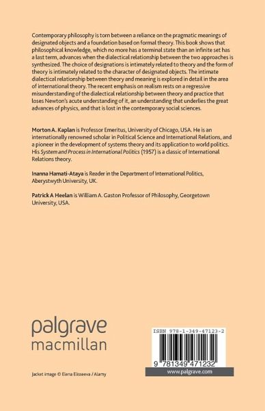 Contemporary philosophy is torn between a reliance on the pragmatic meanings of designated objects and a foundation based on formal theory. This book shows that philosophical knowledge, which no more has a terminal state than an infinite set has a last term, advances when the dialectical relationship between the two approaches is synthesized. The choice of designations is intimately related to theory and the form of theory is intimately related to the character of designated objects. The intimate dialectical relationship between theory and meaning is explored in detail in the area of international theory. The recent emphasis on realism rests on a regressive misunderstanding of the dialectical relationship between theory and practice that loses Newton's acute understanding of it, an understanding that underlies the great advances of physics, and that is lost in the contemporary social sciences.