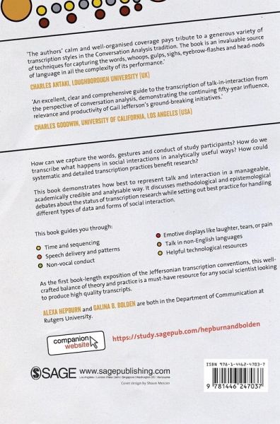 As the first book-length exposition of the Jeffersonian transcription conventions, this well-crafted balance of theory and practice is a must-have resource for any social scientist looking to produce high quality transcripts.