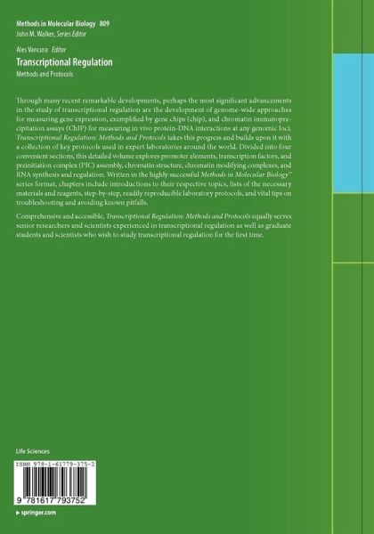 Comprehensive and accessible, Transcriptional Regulation: Methods and Protocols equally serves senior researchers and scientists experienced in transcriptional regulation as well as graduate students and scientists who wish to study transcriptional regulation for the first time.