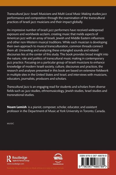 Transcultural Jazz: Israeli Musicians and Multi-Local Music Making studies jazz performance and composition through the examination of the transcultural practices of Israeli jazz musicians and their impact globally.