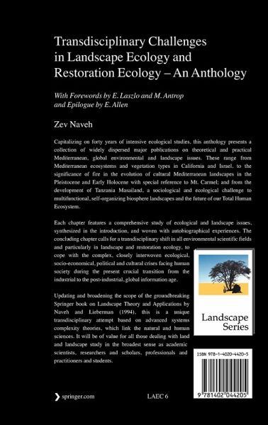 FROM THE FOREWORD BY MARC ANTROP, LEADING LANDSCAPE ECOLOGIST AND CO-EDITOR OF "LANDSCAPE ECOLOGY": Clearly, this anthology is not just a collection of previous work, but a reflection of a scholar on his past work looking at it with greater wisdom and concern for the future development. When he uses the term 'landscape ecology' it has a much broader meaning than just a kind of ecology or a specific discipline. He speaks of a transdisciplinary landscape science; biology-ecology and culture always go hand in hand when it comes to diversity, conservation and restoration. The real significance of ecological research is given by its contribution within the Total Human Ecosystem as part of the Grand Synthesis of Laszlo, who inspired very much Naveh's work. FROM THE PREFACE BY ERVIN LASZLO, EMINENT, WORLD RENOWN, SYSTEM SCIENTIST, PLANNER AND PHILOSOPHER It is a genuine pleasure and distinct privilege to write this introductory note to Zev Naveh's comprehensive summary of his life-work, an opus of truly epoch-making dimensions and significance. Writing this Preface is a personal pleasure because it is seldom that a theoretician can discover that his ideas have fallen on fertile grounds not only on the level of theory, but also of practice - or, as a first step, as practice-oriented applied theory. This, however, is what I have found in Naveh's writings. I am delighted that his THE (Total Human Ecosystem) model not only uses the holistic thinking I have long championed as a general  framework, but finds use for such specific theoretical concepts as my general-evolution theoretical model of bifurcation-based sequential evolution, and even more remarkably, for the Integral Theory of Everything I have outlined recently, rooted in the concept of a universal information-field, the Akashic or A-field. .... We should be grateful to courageous and insightful ecologists such as Zev Naveh for pointing to the fallacy of the fragmented reductionistic approach, and insisting that, both in the interest of scientific accuracy and of our life and future, applying the holistic paradigm of complex, interacting and information-imbued systems is of urgent and crucial importance. If any reader may still entertain any doubt about the scientific validity and practical utility of the holistic approach in landscape ecology, he or she has only to read this volume. It marks a milestone in the vital advance of integrated evolutionary systems thinking in the empirical sciences. FROM THE EPILOGUE BY EDITH ALLEN, LEADING RESTORATION ECOLOGIST AND FORMER EDITOR OF "RESTORATION ECOLOGY": A LIFETIME OF LEADERSHIP IN THE FIELDS OF LANDSCAPE ECOLOGY, RESTORATION ECOLOGY, AND ECOLOGICAL COMPLEXITY The foregoing anthology of Zev Naveh's life work shows not only the progression of his creative thought during his lifetime, but also developments in the fields of landscape and restoration ecology that he helped to shape. In addition, because he is a systems ecologist at heart, he participated in founding the new field of ecological complexity well before it became recognized as a field. Thus he became one of the earliest restoration ecologists, but recognized that humans are part of nature and not apart from nature. The concepts of restoration and landscape ecology developed in tandem in Zev's writings. People were part of the landscape; they shaped the landscape, including the urban, semi-natural, and even the apparently "wild" components of the landscape. Zev's writings emphasize that the cultural and natural processes that created the landscape must also be reinstated. He was in fact the first to introduce the term "cultural landscape restoration". By his remarkable creativity, influential presentations at international meetings, and especially his writings, Zev has become the defining force for three major areas of ecology, and has shown how these areas are interdependent. It has been my great pleasure and honour to be Zev's colleague and co-worker for the last two decades. From the reviews: "Landscape ecology is a relatively new discipline which emerged in the 1980s from overlapping interests in ecology, geography, and conservation. ... An anthology is always a useful reference work ... . This one has been well produced and is a welcome addition to Springer's 'Landscape Series'... ." (Antoinette Mannion, Bulletin of the British Ecological Society, Vol. 38 (4), 2007) "Zev Naveh and Arthur S. Lieberman presented the second edition of their widely appreciated book 'Landscape Ecology'. ...Moreover, the book will be of interest to anyone concerned with or curious to learn about integrated systems thinking."(Rainer Waldhardt, Phytocoenologia, Vol. 38 (4), 2008)