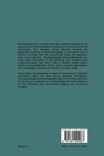 Almost every effort in the care of patients with heart disease begins with some description of disordered physiologic performance or mor phologic anatomy. Since the early work of Edler and Hertz in 1954, echocardiographic methods have grown in importance and reliability for the diagnosis of many cardiac disorders. The placement of a maneuverable transducer on the tip of a modified endoscope is the result of relatively recent technologic advances. The transesophageal approach is now a reality for obtaining new information from ultra-sonic images of a beating human heart. Since images obtained by transesophageal echo cardiography are uniformly of excellent quality, it extends the diagnostic potential of echocardiography to the patient who is difficult to image from the conventional chest wall approach. More importantly, transesophageal echocardiography provides a means to acquire useful information in new situations, such as the operating room. When this imaging modality is broughtto patients undergoing surgical procedures, surgeons and anesthesiologists have a ready means for assessing cardiac performance during anesthesia, directing various surgical approaches and immediately evaluating the results of surgical repair. Transesophageal echocardiographic techniques represent a major vi vii advance in the care of patients with cardiovascular disease. Never before has there been a means to acquire such important information about the heart during an operative intervention. New questions are being asked and new answers are at hand.