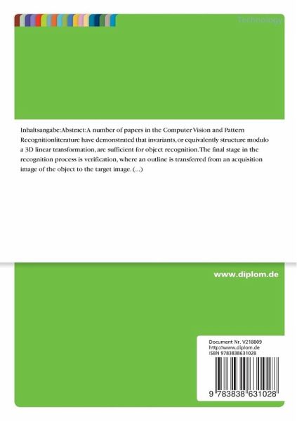 Eine Reihe von Veröffentlichungen in der Bildverarbeitungs- und Mustererkennungsliteratur hat gezeigt, dass Invarianten, oder alternativ Struktur Modulo einer 3D linearen Transformation, die Erkennung von Objekten aus Bildern ermöglicht. Der letzte Schritt im Erkennungsprozess ist die Verifikation, in der eine Kontur einer exemplarischen Ansicht des Objektes in das Bild zurückprojeziert wird.