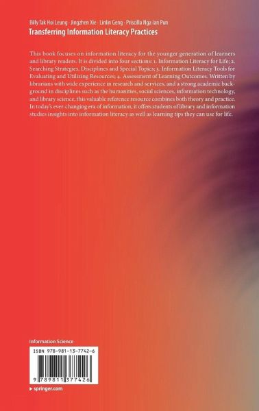 This book focuses on information literacy for the younger generation of learners and library readers. It is divided into four sections: 1. Information Literacy for Life; 2. Searching Strategies, Disciplines and Special Topics; 3. Information Literacy Tools for Evaluating and Utilizing Resources; 4. Assessment of Learning Outcomes. Written by librarians with wide experience in research and services, and a strong academic background in disciplines such as the humanities, social sciences, information technology, and library science, this valuable reference resource combines both theory and practice. In today's ever-changing era of information, it offers students of library and information studies insights into information literacy as well as learning tips they can use for life.