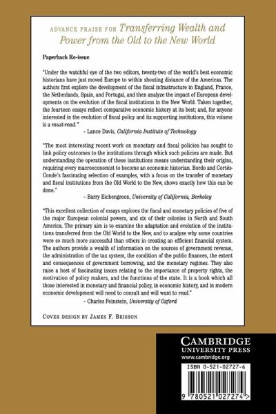 Contributors; 1. Introduction Michael D. Bordo and Roberto Cortés-Conde; Part I. The Old World: 2. The origins and development of stable fiscal and monetary institutions in England Forrest Capie; 3. France and the failure to modernize macroeconomic institutions Eugene N. White; 4. The Netherlands in the New World: the legacy of European fiscal, monetary and trading institutions for New World development from the seventeenth to the nineteenth centuries Jan DeVries; 5. Fiscal and monetary institutions in Spain (1600-1900) Gabriel Tortella and Franciso ComÃn; 6. War, taxes, and gold: the inheritance of the real Jorge Braga de Macedo, Ãlvaro Ferreira da Silva and Rita Martins de Sousa; Part II. The New World: 7. The United States: financial innovation and adaptation, Richard Sylla; 8. The legacy of French and English fiscal and monetary institutions for Canada Michael D. Bordo and Angela Redish; 9. Mexico: from colonial fiscal regime to liberal financial order, 1750-1912 Carlos Marichal and Marcello Carmagnani; 10. Property rights and the fiscal and financial systems in Brazil: colonial heritage and the imperial period Marcelo de Paiva Abreu and Luis A. Corrêa do Lago; 11. Argentina: from colony to nation: fiscal and monetary experience of the eighteenth and nineteenth centuries Roberto Cortés-Conde and George T. McCandless; 12. Continuities and discontinuities in the fiscal and monetary institutions of New Granada, 1783-1850 Jaime U. Jaramillo, Adolfo R. Maisel and Miguel M. Urrutia; Part III. Commentaries: 13. The state in economic history Herschel I. Grossman; 14. Reflections on the collection Albert Fishlow; Index.