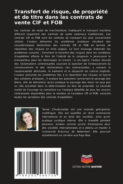 Les contrats de vente de marchandises impliquant le transport maritime diffèrent largement des contrats de vente nationaux traditionnels. Les contrats CIF et FOB sont les contrats de transport les plus couramment utilisés. L'auteur démontre les problèmes pratiques résultant des caractéristiques distinctives des contrats CIF et FOB en termes de répartition des risques en droit anglais. Le livre envisage d'aborder les problèmes suivants : Comment le transfert des risques dans les conditions d'expédition affecte le titre de l'intérêt de la cargaison à poursuivre le transporteur pour les dommages en transit ; à cet égard, l'auteur discute des réclamations contractuelles couvrant la question de l'endossement du connaissement et des réclamations non contractuelles, y compris la responsabilité délictuelle, le bailment et le dispositif de contrat implicite. L'auteur présente les problèmes liés à la répartition des risques et fournit des solutions pratiques ; il analyse les questions concernant le passage des biens, afin de démontrer qu'en pratique le passage des biens ne joue pas un rôle essentiel dans la détermination du titre de propriété. La seconde moitié de l'ouvrage se concentre sur l'analyse détaillée de tous les recours contractuels disponibles pour le vendeur et l'acheteur CIF et FOB, couvrant toutes les variations des contrats d'expédition.