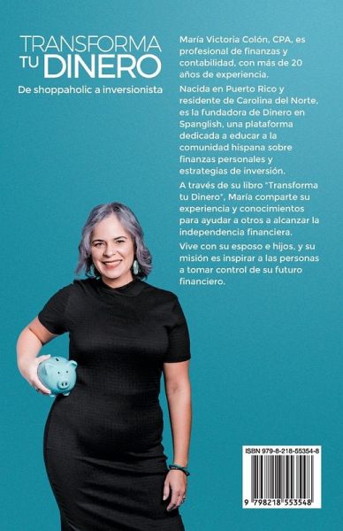Transforma tu Dinero, de María V. Colón, CPA, es una guía poderosa y práctica que rompe las barreras culturales y los mitos financieros que enfrentan tantas familias latinas. En muchas comunidades latinas, el dinero es un tema del que se habla poco o nada, y esto deja a muchos sin la educación financiera necesaria para prosperar. La autora de este libro es una experta en finanzas nacida en Puerto Rico que conoce de primera mano estos retos y ha dedicado su carrera a ayudar a otros a salir adelante. Su historia es una prueba de que transformar tu relación con el dinero es posible porque descubrió qué hacer para alcanzar salarios que alguna vez fueron un sueño y navegar el mundo corporativo hasta encontrar su camino hacia la libertad financiera. En Transforma tu Dinero, Maria ofrece consejos realistas y culturalmente relevantes, diseñados para que cualquier persona pueda tomar el control de sus finanzas y construir la vida que sueña. A lo largo de sus páginas, aprenderás a: ¿ Superar las barreras emocionales que dificultan el ahorro y la inversión, ¿ Crear un plan claro para liberarte de las deudas, ¿ Invertir de forma sencilla y efectiva para el futuro que deseas, ¿ Manejar tus finanzas sin culpa, sin importar tu ingreso actual. Con la guía y el conocimiento accesible que solo alguien que ha estado en tu lugar puede ofrecer, Transforma tu Dinero te ayudará a convertir el dinero en una herramienta de empoderamiento y cambio. Prepárate para transformar tu vida financiera y empezar a vivir según tus propios términos.