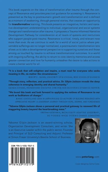 "We loved this book and look forward to applying the notions of Resonance to our work as facilitators of change. Yabome's research grounds this work solidly, sharing stories of others as well as her own powerful ones. She provides many practical exercises and reflective questions to engage with the theory of Resonance. Transformation after Trauma: The Power of Resonance is a must read." -Jeanie Cockell and Joan McArthur-Blair, Co-authors of Building Resilience with Appreciative Inquiry: A Leadership Journey through Hope, Despair, and Forgiveness