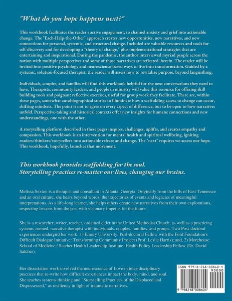Post-pandemic workbook, moving beyond languishing. Tools for purposeful reflection, assessment, and implementation. Teaches storytelling strategies, to shift human relations. Mental wellbeing requires community. Faith restores humanity.