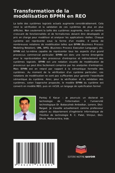 La taille des systèmes logiciels actuels augmente considérablement. Cela rend la vérification et la validation de ces systèmes de plus en plus difficiles. Non seulement la taille des systèmes augmente, mais un nombre croissant de fonctionnalités et de formalismes doivent être développés et pris en charge pour modéliser et analyser les applications réelles. Chaque système est représenté sous la forme d'un modèle. Il existe de nombreuses notations de modélisation telles que BPMN (Business Process Modeling Notation), UML, BPEL (Business Process Execution Language), etc. BPMN est lui-même capable de représenter tous les aspects d'un grand processus commercial particulier. BPMN est donc une norme émergente pour la représentation des processus d'entreprise et indirectement des systèmes logiciels. BPMN est une notation visuelle de modélisation de processus qui peut être facilement comprise par les analystes d'entreprise. Mais BPMN est en retard par rapport à la sémantique formelle des systèmes. Au moment de la vérification d'un système particulier, ces notations de modélisation ne sont pas suffisantes pour garantir l'exactitude sémantique du système. Ainsi, pour la vérification et la validation des systèmes, selon l'approche proposée, le modèle BPMN du système est converti en modèle REO, puis en mCLR, un langage de spécification formel.