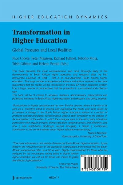 "This book addresses a rich variety of issues on South African higher education. It puts these in the relevant context of the process of globalization and it shows that the South African experiences offer us a lot to learn. Highly recommended for those who are intrigued by the innovations taking place in South African higher education as well as for those who intend to grasp the effects of globalization."