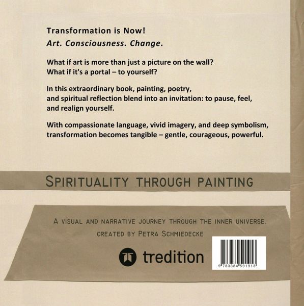 This book is a visual and narrative journey through the inner universe.What if art is more than just an image on a wall? What if it's a portal - to yourself?In this extraordinary book, painting, poetry, and spiritual reflection merge into one invitation: to pause, to feel, and to realign.Each painting opens a space. Each story speaks of inner transformation. Each page offers a spark for your own journey.__"Transformation Is Now"__ is not your typical art book - it's a book for the heart and consciousness. For all those who sense that change has already begun - and that it's happening within us.With a tender voice, clear imagery, and deep symbolism, the shift becomes tangible - quiet, brave, and powerful. Short stories guide you through the flow.The door is open. Step inside.