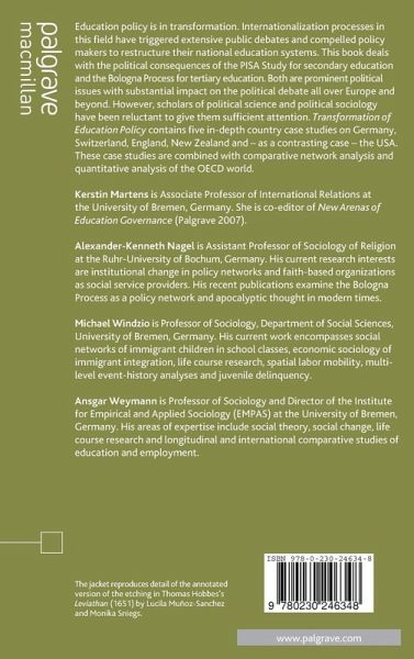 Transformation of Education Policy deals with internalization processes in education policy and their impact on national policy making. It investigates national responses to the PISA study for secondary education and the Bologna study for tertiary education.