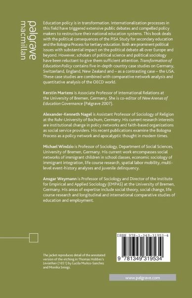 Transformation of Education Policy deals with internalization processes in education policy and their impact on national policy making. It investigates national responses to the PISA study for secondary education and the Bologna study for tertiary education.