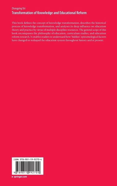 This book defines the concept of knowledge transformation, describes the historical process of knowledge transformation, and analyses its deep influence on education theory and practice by virtue of multiple discipline resources. The general scope of this book encompasses the philosophy of education, curriculum studies, and education reform research. It enables readers to understand how 'hidden' epistemological factors have changed or reshaped the education system throughout history and at present.