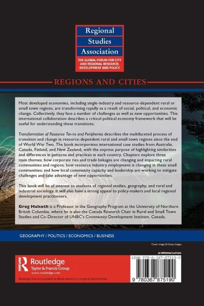 Most developed economies, including single-industry and resource dependent rural or small town regions, are transforming rapidly as a result of social, political, and economic change. Collectively, they face a number of challenges as well as new opportunities. This international collaboration describes a critical political economy framework that will be useful for understanding these transitions. Transformation of Resource Towns and Peripheries describes the multi-faceted process of transition and change in resource dependent rural and small town regions since the end of the Second World War. The book incorporates international case studies from Australia, Canada, Finland and New Zealand, with the express purpose of highlighting similarities and differences in patterns and practices in each country. Chapters explore three main themes: how corporate ties and trade linkages are changing and impacting rural communities and regions; how resource industry employment is changing in these small communities; and how local community capacity and leadership are working to mitigate challenges and take advantage of new opportunities. This book will be of interest to students of regional studies, geography, and rural and industrial sociology. It will also have a strong appeal to policy-makers and local regional development practitioners.