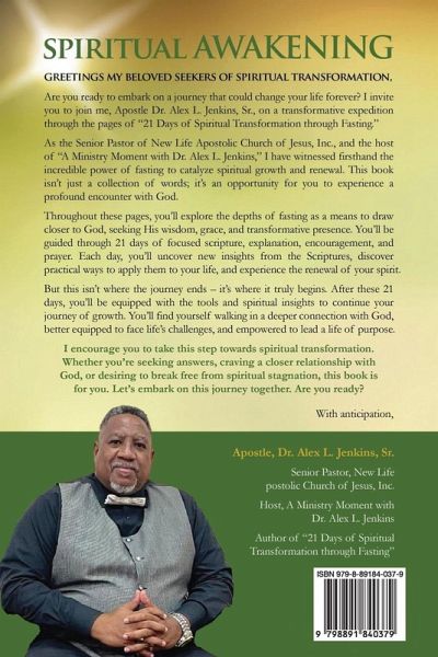 Transformation through Fasting: Spiritual Awakening 21 Days of Spiritual Transformation through Fasting Unlock the Power of Fasting for a Deeper Connection with God and a Transformed Life! Are you seeking a profound spiritual experience that can lead to personal growth and a closer walk with God? Dive into "Transformation through Fasting," a remarkable guide designed to take you on a 21-day journey of spiritual awakening through fasting and prayer. Dr. Alex L. Jenkins, Sr. shares his profound insights and wisdom, drawing from years of experience as a devoted pastor. In this illuminating book, you'll discover how fasting transcends a simple practice and becomes a spiritual adventure. Through engaging chapters, Dr. Jenkins walks you through the physical, mental, and spiritual benefits of fasting. Key Takeaways: ¿ Enhanced Physical Health: Learn how fasting can rejuvenate your body, reduce inflammation, and boost your overall well-being. ¿ Mental Clarity and Emotional Balance: Explore the mental and emotional benefits of fasting, including improved focus, mood regulation, and spiritual awareness. ¿ Spiritual Growth: Experience a deeper connection with God and discover how fasting can transform your faith and relationship with the divine. ¿ Weight Loss and Metabolism: Uncover how fasting, when combined with a healthy lifestyle, can help you shed those extra pounds. ¿ Improved Immune Function: Find out how fasting can strengthen your immune system and safeguard your health. As you journey through these transformative 21 days, Dr. Jenkins provides practical tips, scriptural guidance, and encouragement to help you succeed. This book also extends a heartfelt invitation to join the New Life Apostolic Church of Jesus, Inc. in their annual 21-Day Daniel Fast, fostering community and spiritual growth. Experience the profound impact of fasting, cultivate a deeper connection with God, and awaken your spirit. Don't miss this opportunity to embrace the power of transformation through fasting! Grab your copy of "Transformation through Fasting" today and start your path to spiritual awakening and holistic well-being.
