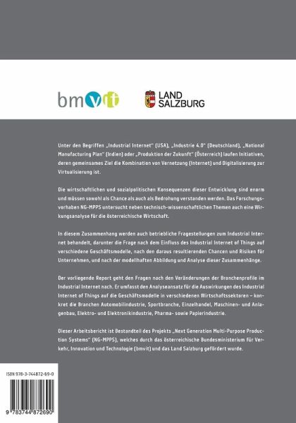 Unter den Begriffen Industrial Internet (USA), Industrie 4.0 (Deutschland), National Manufacturing Plan (Indien) oder Produktion der Zukunft (Österreich) laufen Initiativen, deren gemeinsames Ziel die Kombination von Vernetzung (Internet) und Digitalisierung zur Virtualisierung ist. Die wirtschaftlichen und sozialpolitischen Konsequenzen dieser Entwicklung sind enorm und müssen sowohl als Chance als auch als Bedrohung verstanden werden. Das Forschungsvorhaben NG-MPPS untersucht neben technisch-wissenschaftlichen Themen auch eine Wirkungsanalyse für die österreichische Wirtschaft.In diesem Zusammenhang werden auch betriebliche Fragestellungen zum Industrial Internet behandelt, darunter die Frage nach dem Einfluss des Industrial Internet of Things auf verschiedene Geschäftsmodelle, nach den daraus resultierenden Chancen und Risiken für Unternehmen, und nach der modellhaften Abbildung und Analyse diese Zusammenhänge.Der vorliegende Report geht den Fragen nach den Veränderungen der Branchenprofile im Industrial Internet nach. Er umfasst den Analyseansatz für die Auswirkungen des Industrial Internet of Things auf die Geschäftsmodelle in verschiedenen Wirtschaftssektoren - konkret die Branchen Automobilindustrie, Sportbranche, Einzelhandel, Maschinen- und Anlagenbau, Elektro- und Elektronikindustrie, Pharma- sowie Papierindustrie.Dieser Arbeitsbericht ist Bestandteil des Projekts Next Generation Multi-Purpose Production Systems (NG-MPPS) welches durch das österreichische Bundesministerium für Verkehr, Innovation und Technologie (bmvit) und das Land Salzburg gefördert wurde.