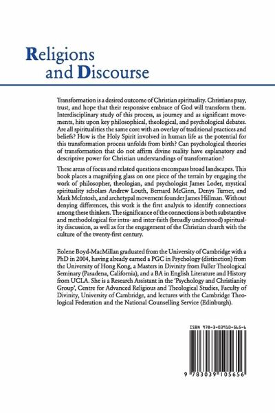 These areas of focus and related questions encompass broad landscapes. This book places a magnifying glass on one piece of the terrain by engaging the work of philosopher, theologian, and psychologist James Loder, mystical spirituality scholars Andrew Louth, Bernard McGinn, Denys Turner, and Mark McIntosh, and archetypal movement founder James Hillman. Without denying differences, this work is the first analysis to identify connections among these thinkers. The significance of the connections is both substantive and methodological for intra- and inter-faith (broadly understood) spirituality discussion, as well as for the engagement of the Christian church with the culture of the twenty-first century.