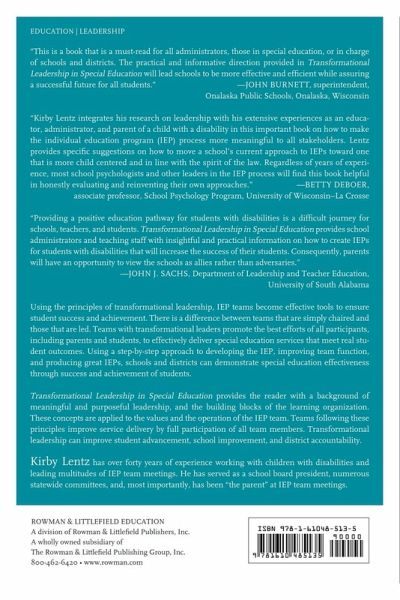 Using the principles of transformational leadership, IEP teams become effective tools to ensure student success and achievements. There is a difference of teams that are simply chaired and those that are lead. Teams with transformational leaders promote the best efforts of all participants including parents and students to effectively deliver special education services that meet real student outcomes. Using a step-by-step approach to developing the IEP, improving team function and producing Great IEPs, schools and districts can demonstrate special education effectiveness through success and achievement of students. Transformational Leadership provides the reader with a background of meaningful and purposeful leadership, and the building blocks of the learning organization. These concepts are applied to the values and the operation of the IEP team. Teams following these principals improve service delivery by full participation of all team members. Transformational leadership can improve student advancement, school improve, and district accountability.