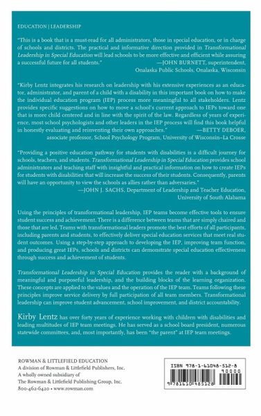 Using the principles of transformational leadership, IEP teams become effective tools to ensure student success and achievements. There is a difference of teams that are simply chaired and those that are lead. Teams with transformational leaders promote the best efforts of all participants including parents and students to effectively deliver special education services that meet real student outcomes. Using a step-by-step approach to developing the IEP, improving team function and producing Great IEPs, schools and districts can demonstrate special education effectiveness through success and achievement of students. Transformational Leadership provides the reader with a background of meaningful and purposeful leadership, and the building blocks of the learning organization. These concepts are applied to the values and the operation of the IEP team. Teams following these principals improve service delivery by full participation of all team members. Transformational leadership can improve student advancement, school improve, and district accountability.