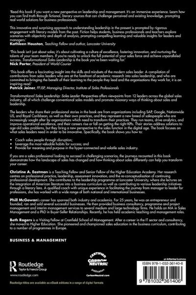 'This book offers a fascinating insight into the skills and mindsets of the modern sales leader. A compilation of contributions from sales leaders who are at the forefront of academic research into sales leadership, and who are committed to bringing the benefit of their learning to the people they lead and the organisations they work for, it is an inspiring read.'