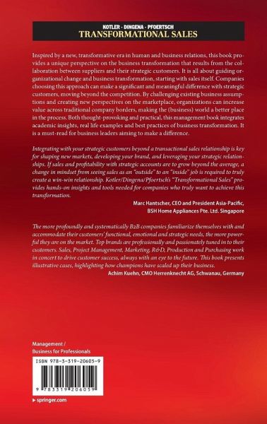 "Integrating with your strategic customers beyond a transactional sales relationship is key for shaping new markets, developing your brand, and leveraging your strategic relationships. If sales and profitability with strategic accounts are to grow beyond the average, a change in mindset from seeing sales as an "outside" to an "inside" job is required to truly create a win-win relationship. Kotler/Dingena/Pfoertsch's "Transformational Sales" provides hands-on insights and tools needed for companies who truly want to achieve this transformation."