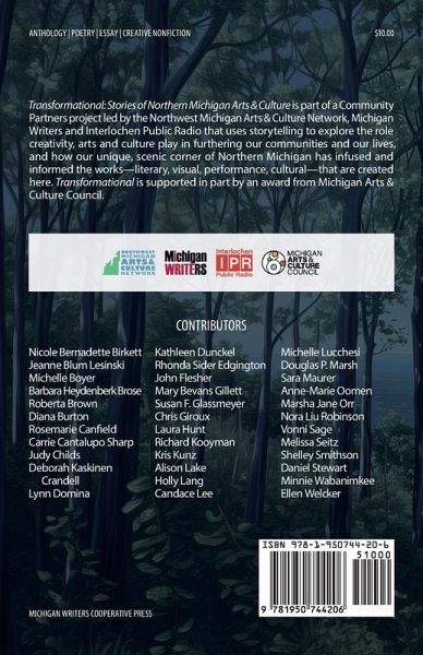 Transformational: Stories of Northern Michigan Arts & Culture is part of a Community Partners project led by the Northwest Michigan Arts & Culture Network, Michigan Writers and Interlochen Public Radio that uses storytelling to explore the role creativity, arts and culture play in furthering our communities and our lives, and how our unique, scenic corner of Northern Michigan has infused and informed the works-literary, visual, performance, cultural-that are created here. Transformational is supported in part by an award from Michigan Arts & Culture Council.