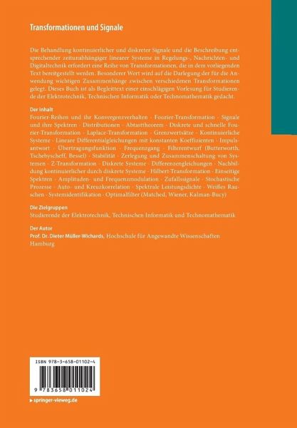 Die Behandlung kontinuierlicher und diskreter Signale und die Beschreibung entsprechender zeitunabhängiger linearer Systeme in Regelungs-, Nachrichten- und Digitaltechnik erfordert eine Reihe von Transformationen, die in dem vorliegenden Text bereitgestellt werden. Besonderer Wert wird auf die Darlegung der für die Anwendung wichtigen Zusammenhänge zwischen verschiedenen Transformationen gelegt. Dieses Buch ist als Begleittext einer einschlägigen Vorlesung für Studenten der Elektrotechnik, Technischen Informatik oder Technomatik gedacht.