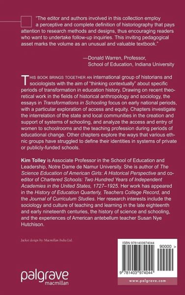 Comparative Perspectives on States, Communities, and Schooling: An Introduction; K.Tolley Middle Class Formations and the Emergence of National Schooling: A Historiographical Review of the Australian Debate; G.Sherington & C.Campbell Education and State Formation Reconsidered: Chinese School Identity in Postwar Singapore; T.Wong Disciplining Liberty: Struggles for Schooling in Early National Columbia, 1820-1839; M.Clark State Schooling in the Raj: Disengagement and Lesson Teaching to an Urban Elite; T.Allender In the Pay of the Public: Changing Ideas about Gender and the Political Economy of Teaching in 19th Century New York; N.Beadie The Teaching Family, the State, and New Women in Nineteenth-Century South Australia; K.Whitehead From Spaniard to Mexican and then American: Perspectives on the Southwestern Latino School Experience, 1800-1900; V.Maria-MacDonald & M.Nilles Cultural Categories, Hegemony, and the Schooling of the Lumbee Indians in Nineteenth-Century North Carolina; H.K.Dial Historic Equity and Diversity Policies in Canada; R.Joshee & L.Johnson The 1934 South African Education Conference as a Benchmark of Changing Educational Discourse?; P.Kallaway The "Historicality" of the Individual, Community, and State: Reflections on Historiography; K.Tolley