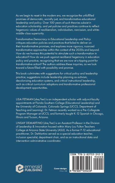 Transformative Democracy in Educational Leadership and Policy critiques education policies and practices that failed to deliver on their transformative promises, and explores more rigorous, nuanced transformative approaches within the context of the 2020s and beyond.