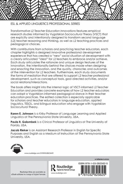 Transformative L2 Teacher Education Innovations features empirical research studies informed by Vygotskian Sociocultural Theory (VSCT) that are explicitly and intentionally designed to transform second language (L2) teacher reasoning and thinking, as well as L2 teaching practices and pedagogical choices.
