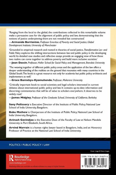 Preface. 1. Why is law central to policy processes in Global South? Babu Mathew, Sony Pellissery and Arvind Narrain 2. The rise of an anti- global doctrine and strikes in public services Lilach Litor 3. Scrutiny of Sovereign Border Policy for 'Operational Matters': A New Political Role for an Old Legal Dichotomy in Australia? Suzanne Bevacqua and John Bevacqua 4. Sovereign Debt Restructuring: Locating Indian Law and Jurisprudence in the Contemporary International Legal Order Ansari Salamah 5. The Legal and Policy Questions in Foreign Direct Investment: An Assessment using Indian Case Priya Misra and Praveen Tripathi 6. Politics of Making and Unmaking of the Indian Planning Commission: Destiny of non-statutory institutions Sony Pellissery, S. Sharada and Anusha Chaitanya 7. Constitutional Promise vs Practices of Participation and Representation of Minorities in South Asia Mushtaq Malla 8. Growing up in families with low income - the state's legal obligation to recognize the child's right to adequate standard of living Julia Köhler-Olsen 9. Implementers of law or policymakers too? A study of street-level bureaucracy in India Amrutha Jose Pampackal 10. Production of space in Urban India: Legal and Policy challenges of land assembly Varun Panickar 11. Rawls, Nozick and Dworkin in an Indian village: Land alienation and multiple versions of distributive justice Naivedya Parakkal, Sony Pellissery and Rajesh Sampath 12. Concluding Reflections: Transformative Constitutionalism as a framework for law and policy integration in the global south Avinash Govindjee. Index.