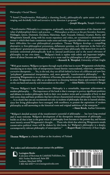 The cross-fruition between analytical philosophy and continental philosophical traditions has stimulated a wide-ranging debate about the role of philosophy and the use of argument and reason in culture. Through a discussion of salient themes in the analytical tradition, in the work of the later Wittgenstein, and in critical theory,Transformative Philosophy articulates a novel conception of philosophy as a transformative care for self and others.