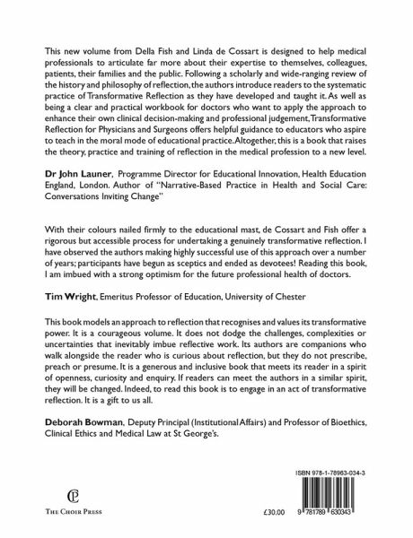 Transformative Reflection for Practicing Physicians and Surgeons is addressed to physicians and surgeons but the principles upon which it rests would be valuable for members of any profession. The Transformative Reflective Process has been designed and, over many years, tested in everyday practice with medical practitioners. Its focus is to unpack and explore the decision-making and professional judgements that doctors use frequently in everyday practice. The intention of this is to promote the development and growth of practical wisdom in order to enhance the quality of patient care. Transformative Reflection can radically enlighten a medical professional’s understanding of themselves, their detailed thinking, and the nuances of their practice. The process sharpens a doctor’s acumen (their ability to make good judgements and take quick decisions) and enables them to articulate for themselves and develop further, the deepest elements of what characterises their practice. In this sense therefore, it offers truly worthwhile education. It also provides a means of sharing the complexity and special nature of medical practice with those both inside and outside medicine, who need to understand it better. It has the potential, we believe, when shared, to benefit society’s understanding of what is involved inside medical practice and thus clarify what it is reasonable to expect from The NHS’s human servants.