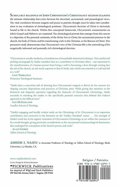 Scholarly readings of John Chrysostom's Christology seldom examine the intimate relationship that exists between his doctrinal, sacramental, and praxeological views. The vital correlation between exegesis and praxis in patristic thought must be taken into consideration in any evaluation of christological positions. Chrysostom's doctrine of Christ is intricately bound to life in the church. Within this conceptual framework, Chrysostom's commentaries on John's Gospel and Hebrews are examined. The christological portrait that emerges from this oeuvre is a depiction of the personal continuity of the divine Son in Christ; his sacramental presence in the church, the body of Christ; and his transforming work in the Christian, to the likeness of Christ. This persuasive study demonstrates that Chrysostom's view of the Christian life is the outworking of his exegetically informed and pastorally rich christological doctrine.