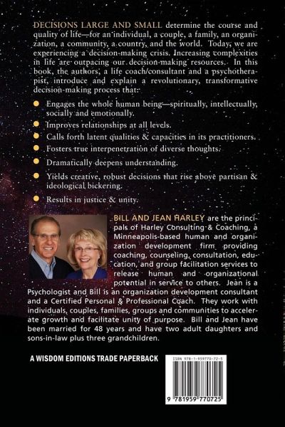 This is a book about a transformative decision-making process designed to address the conditions and complexities of modern life for individuals, pairs, families, neighborhoods, villages, cities, organizations, states, nations, and the world community. This process not only fosters wise, just, and practical decisions, but spiritual and social advancement for both the people using it and those impacted by the decisions. Our previous book1-about the purposes of life; the spiritual, intellectual, and social growth patterns designed into life by an all-loving Creator; and how to act in alignment with these purposes and patterns-described this decision process briefly and promised an in-depth exploration in our next book. This remarkable process came to our attention in 1968, and we began trying to use it in all areas of our lives. This process has helped us navigate our personal development, cultivate a lasting marriage, raise enlightened children, guide and nurture our grandchildren, assist our aged parents, deal with chronic illnesses, find and practice professions that allow us to be of meaningful service to others, and build responsible, spiritually centered communities that are the hallmark of an emerging global civilization. Working respectively as a professional coach and organization development consultant and as a psychotherapist, we have also applied this methodology with our individual, group, and organizational clients. Whether working with a depressed and anxious individual, a married couple on the verge of divorce, an individual seeking a more meaningful life path, a work group in the midst of conflict, an organization seeking to design its future, or a community trying to take responsibility for its own social, material, and spiritual development, this methodology has provided the guidance needed to make transformative decisions that foster healing, deepened understanding, spiritual growth, social advancement, and unity.