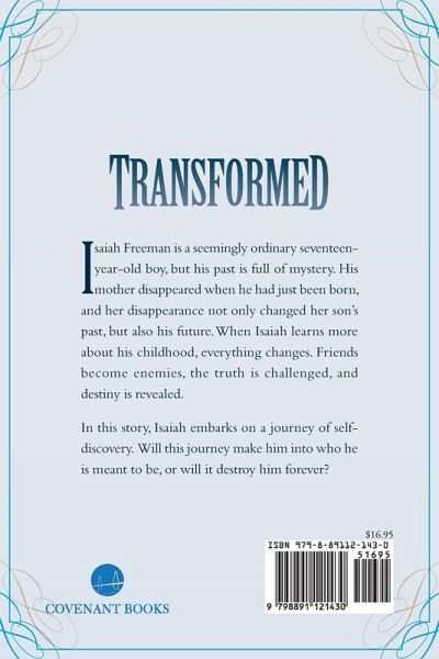 1 Isaiah Freeman is a seemingly ordinary seventeen-year-old boy, but his past is full of mystery. His mother disappeared when he had just been born, and her disappearance not only changed her son's past, but also his future. When Isaiah learns more about his childhood, everything changes. Friends become enemies, the truth is challenged, and destiny is revealed. In this story, Isaiah embarks on a journey of self-discovery. Will this journey make him into who he is meant to be, or will it destroy him forever?