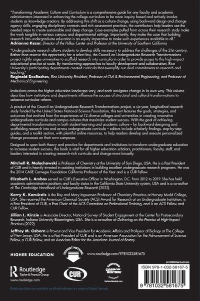 Designed to span both theory and practice for departments and institutions to transform undergraduate education to increase student success, this book is vital for all higher education scholars, practitioners, faculty, staff, and leaders interested in creating research-rich curricula and change more broadly.