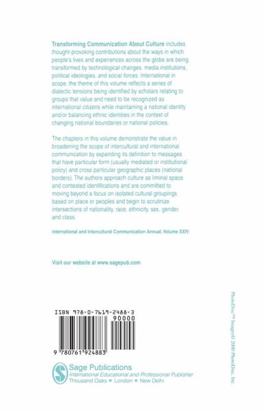 Transforming Communication About Culture includes thought-provoking contributions about the ways in which people's lives and experiences across the globe are being transformed by technological changes, media institutions, political ideologies, and social forces.